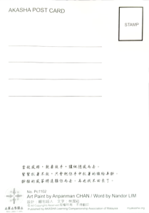 AKASHA 精製多功能卡片,可用做明信片也可以用作寄語卡片, 歡迎大家參與手寫信運動,為身邊親友親筆寫出內心祝福。本卡片售出所得全權充作AKASHA行政秘書的勸募基金,維持行政秘書的運作。